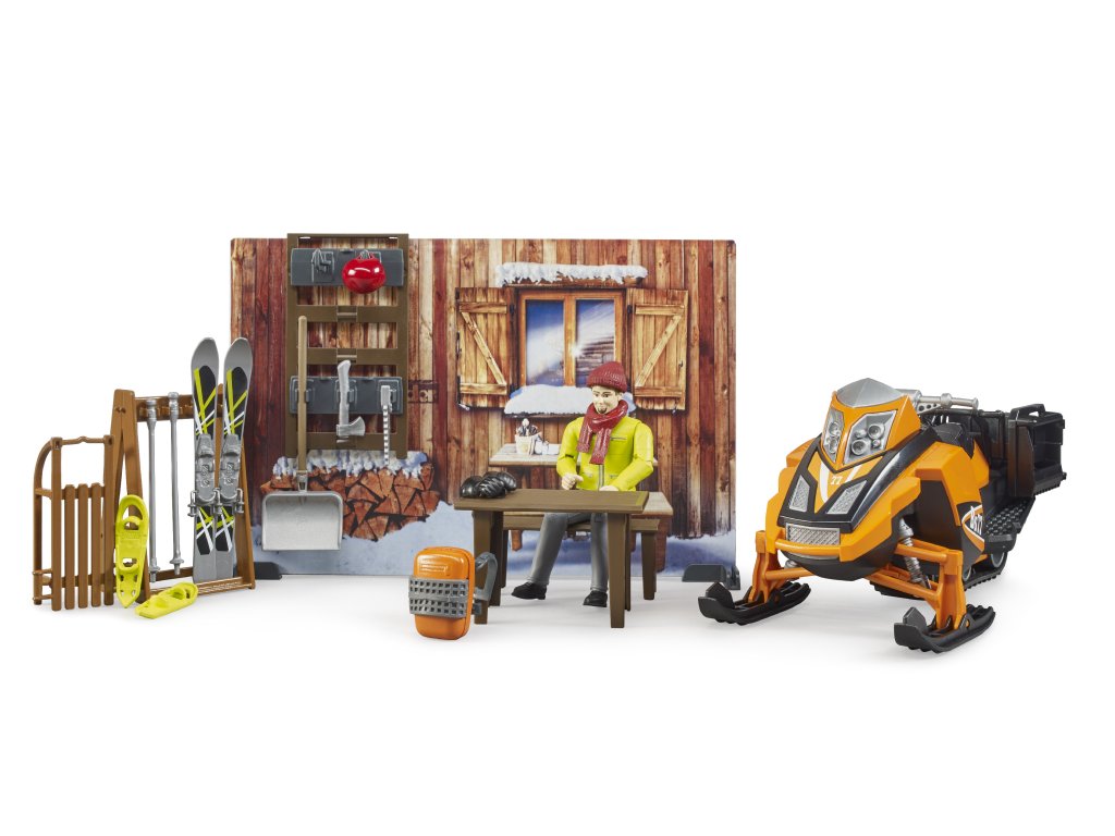 BRUDER 63102 bworld horská chata, figurka, sněžný skůtr