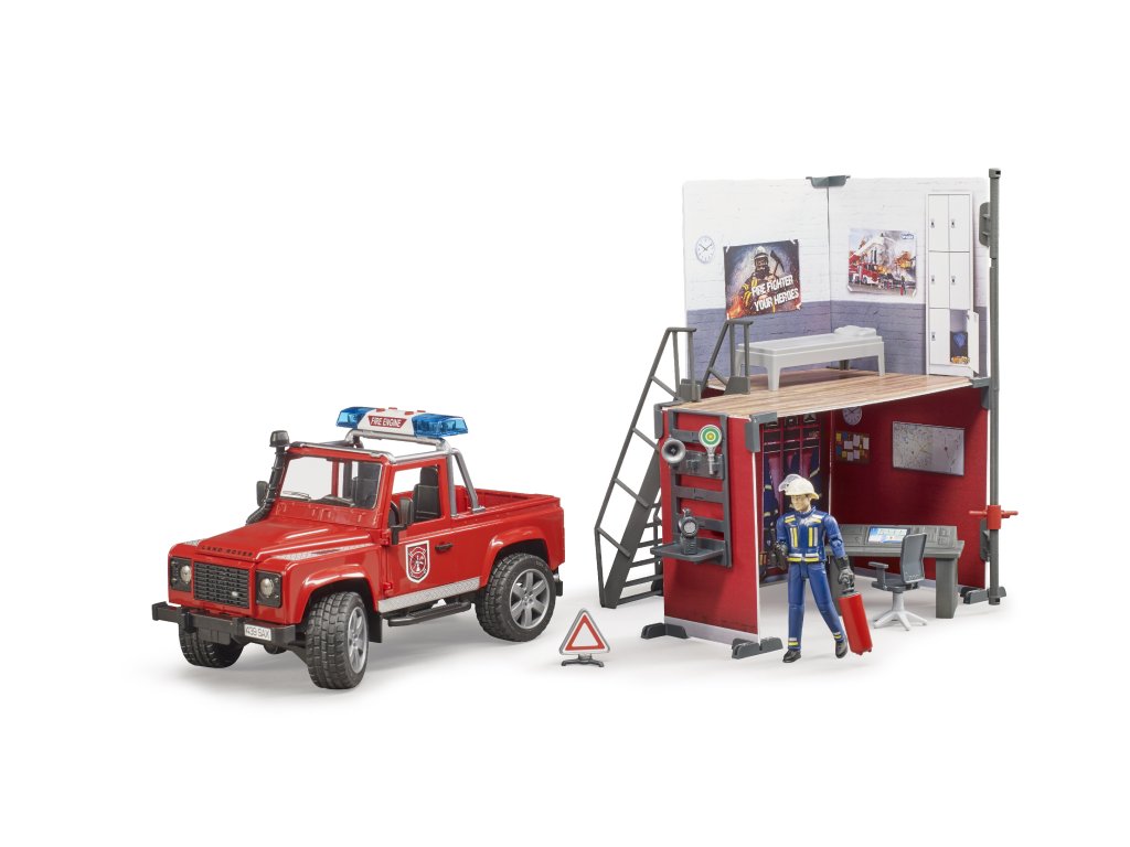 V žádném Bruder světě nesmí chybět hasiči. Jak se vám líbí Hasičská stanice Bruder 62701 s figurkou hasiče, hasičským Land Roverem a dalším nezbytným příslušenstvím?