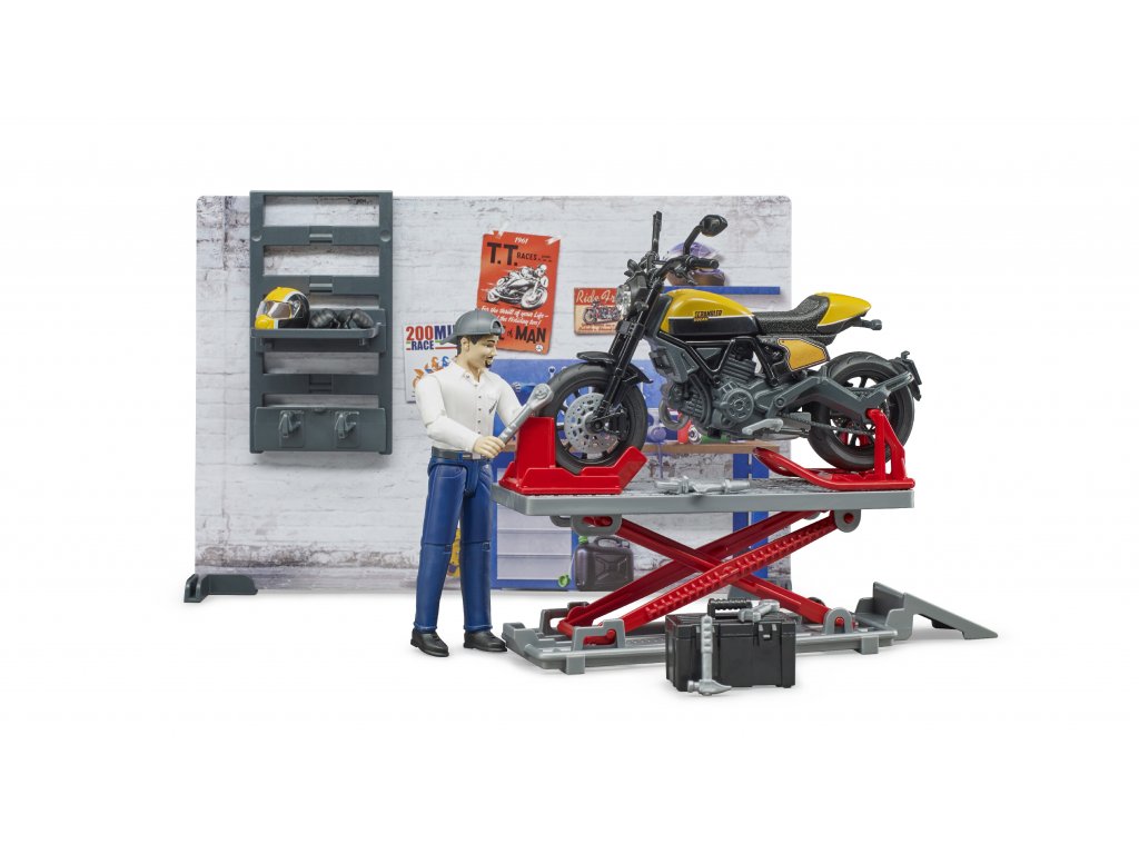 BRUDER 62102 Motodílna + motocykl Ducati + figurka
