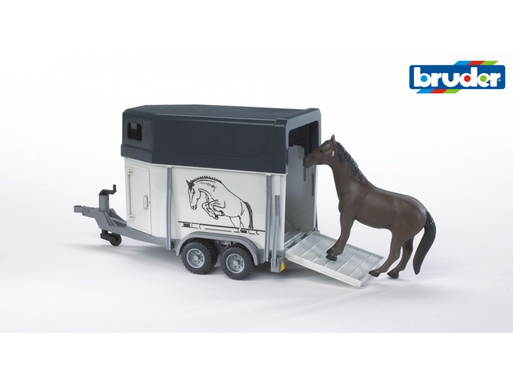 Přepravník na koně firmy Bruder najde uplatnění v každé dětské stáji, a to zejména při transportu koní na závody, prodeji či nákupu. Vůz zaujme nejen poutavým designem, ale především svojí výbavou. Vůz disponuje zadní sklápěcí rampou pro snadné naložení koní, což ocení každý starostlivý majitel, dále bočními otevíratelnými dveřmi a odnímatelnou opětnou nohou, která je ručně ovladatelná za pomocí kličky. Výhodou přepravního vozu je jeho snadné zapojení za traktory série Profi Bruder a Unimogy. Součástí balení je i detailně zpracovaná figurka koně. Další koně lze doobjednat.