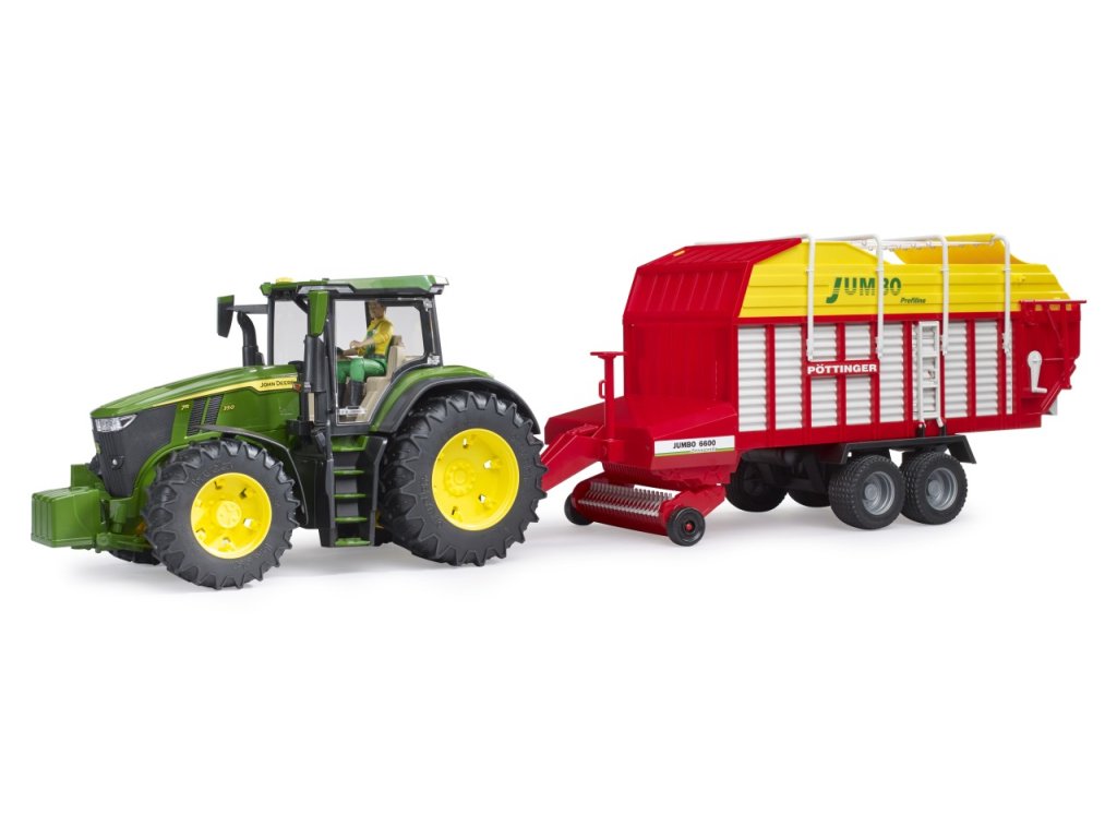 BRUDER Sběrač slámy a sena disponuje sklápěcí zadní stěnou, rotujícím spodním sběračem, rotujícím vykladačem, sklápěcí opěrnou nohou, odnímatelnými bočnicemi a odklápěcím žebříkem. Sběrací válec sběracího vozu Pöttinger se pohybuje za jízdy. Boční přístupový poklop lze otevřít, žebřík lze sklopit dolů a sejmout střešní držáky a lana. Dávkovací válce lze pohánět ruční klikou. Zadní stěna lze otevřít. Opěrná noha nabízí bezpečné stání. Sběrací vůz Pöttinger je vhodný pro všechny traktory BRUDER.