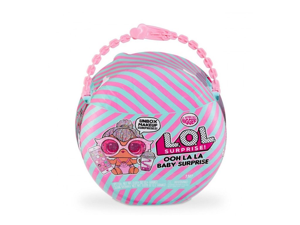 L.O.L. Surprise! Ohh La La Baby! Velké miminko je větší než všichni ostatní L.O.L. sourozenci. Spolu s miminkem najdeš v kouli nové oblečky, doplňky a třpytivá zdravíčka nebo rtěnku pro sebe.