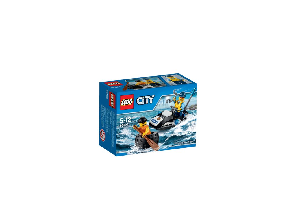 Hlídkuj na vodách LEGO® City na policejním vodním skútru! Odpověz na hlášení, že zločinec uniká s pádlem na pneumatice. Spěchej za ním a chyť ho, než se mu povede utéci, potom mu nasaď pouta a znovu ho zavři do jeho cely na vězeňském ostrově. Pomoz udržet pořádek ve městě!