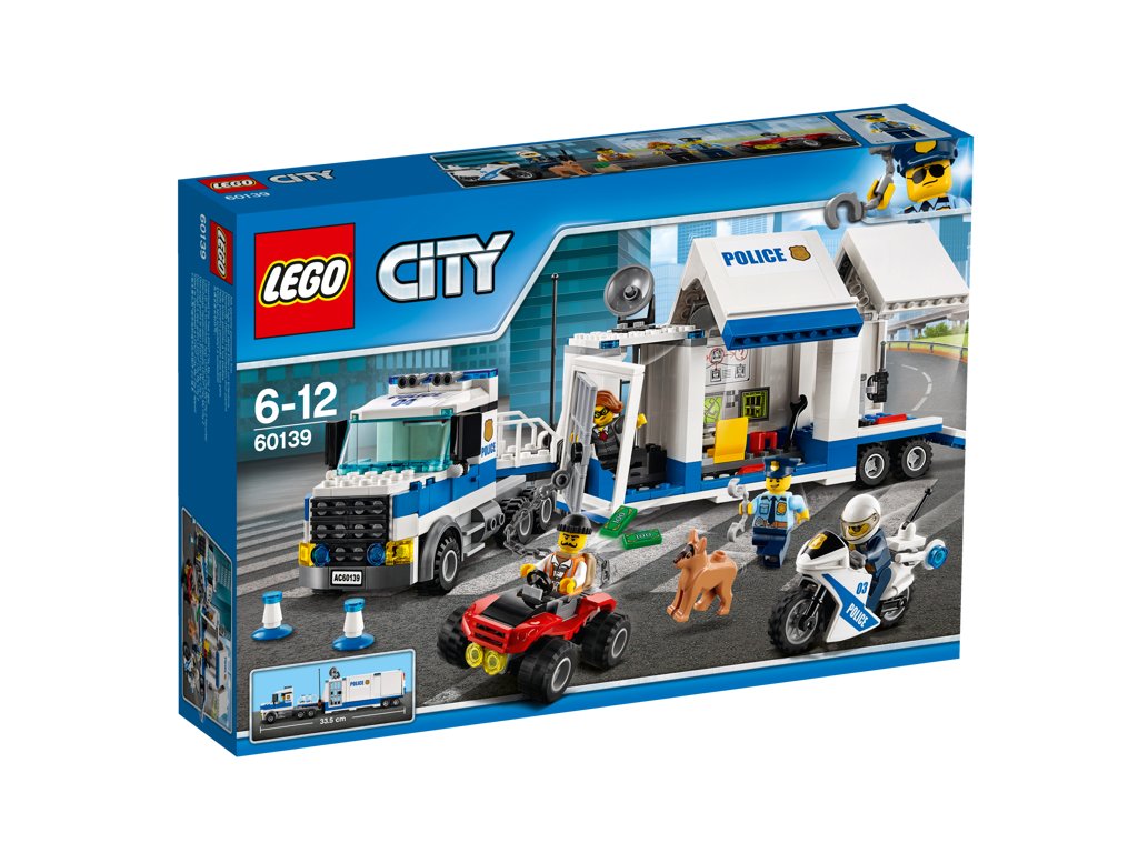 Zapoj se do akce s policisty z LEGO® City, kteří se snaží překazit útěk zločince z vězení v Mobilním velitelském centru, které obsahuje odpojitelnou kabinu náklaďáku, prostor pro dvě minifigurky, monitorovací místnost s obrazovkami, satelitní talíř, otevírací střechu, postranní dveře a zadní rampu, úložný prostor pro motorku, nářadí a funkci útěku z vězeňské cely, navíc čtyřkolka zločinců. Obsahuje čtyři minifigurky a navíc figurku policejního psa.