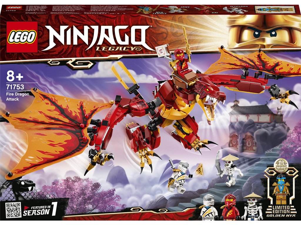 Fandové nindžů si zamilují prožívat dobrodružství na nebesích z 1. řady televizního seriálu LEGO® NINJAGO® se stavebnicí Útok ohnivého draka (71753), která se dočkala nového provedení. Úchvatný model draka je ideální k přehrávání napínavých příběhů, neboť děti mohou hýbat jeho ocasem, nohama, čelistí i křídly. Ve stavebnici najdete 4 úžasné minifigurky: nindži Kaie, Zanea a Nyu z edice Legacy, a navíc jejich protivníka Wyplashe. S nimi mohou děti odehrát bezpočet bitev dobra proti zlu. Zbrusu nová zlatá minifigurka Nyi z edice Legacy spatří světlo světa v červnu 2021, kdy bude vydána k příležitosti 10. výročí stavebnic NINJAGO. Stavebnice LEGO NINJAGO zavedou děti do světa fantazie a akce, ve kterém spojí síly se svými hrdiny a postaví se hrozivým padouchům – k dispozici budou mít úchvatnou kolekci modelů, včetně robotů, motorek a draků.