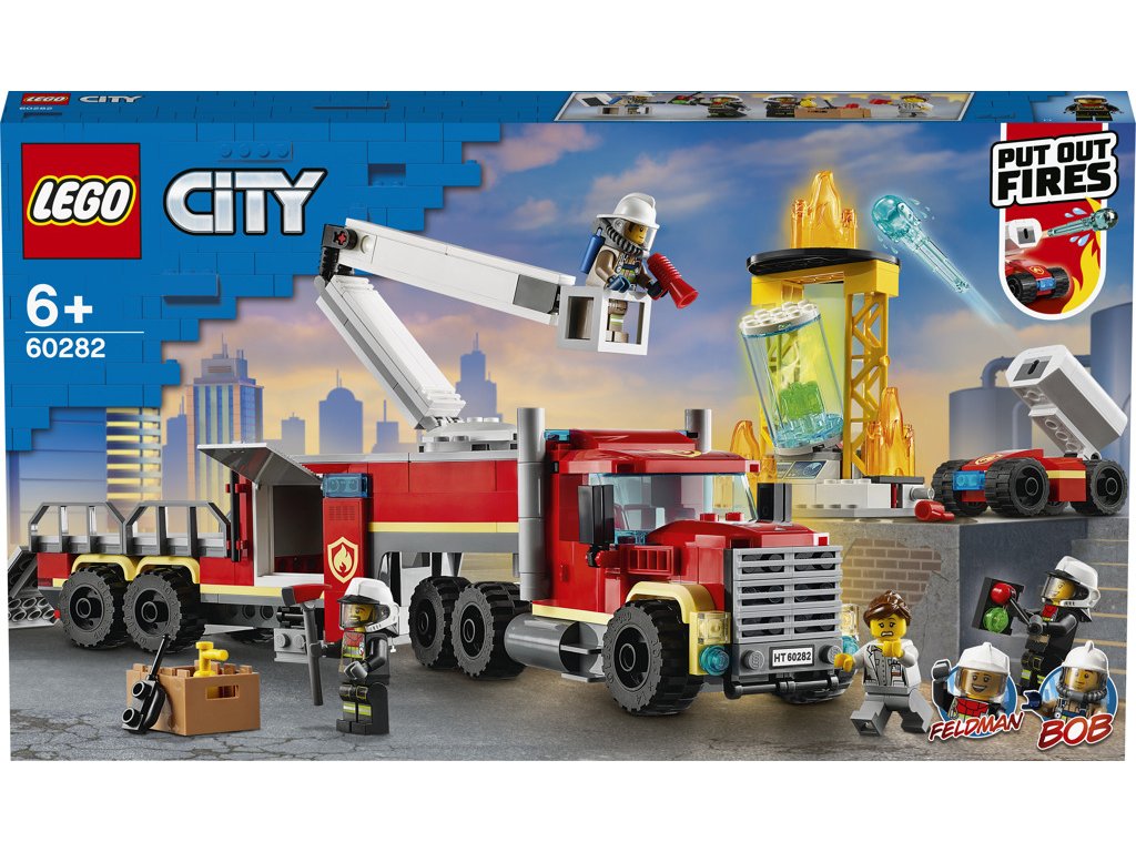 • Děti si mohou přehrávat příběhy z oblíbeného seriálu LEGO® City Dobrodružství se stavebnicí Velitelská jednotka hasičů (60282) od LEGO City, která zaujme realistickými vozidly a zábavnými postavami z televizního pořadu. • Co se ukrývá v krabici? Parádní model požárnického auta s funkční vysokozdvižnou plošinou, vědecká laboratoř se stohovatelnými LEGO® plameny, a k tomu navíc postavy z LEGO City TV – hasičský robot Toastie, Bob a Feldman. • Děti mohou vysunout plošinu hasičského auta, vystřelovat vodní dílky z robota Toastieho, uhasit LEGO® plameny a přehrávat si příběhy s postavami z LEGO City TV. • Tato kvalitní stavebnice poslouží jako parádní dárek k Vánocům, narozeninám nebo jakékoli jiné příležitosti pro fanoušky seriálu LEGO® City Dobrodružství a pro děti, které při hraní rády zapojují tvořivost. • Po sestavení měří hasičské auto (se staženou vysokozdvižnou plošinou) přes 10 cm na výšku, 33 cm na délku a 6 cm na šířku. • Hasičské auto nabízí přihrádku na požárnické doplňky, a k tomu navíc přívěs s rampou pro přepravu hasičského robota jménem Toastie. Obsahuje 3 minifigurky s helmami. • Součástí je nejen srozumitelný návod na stavění, ale také interaktivní pokyny pro začínající stavitele Instructions PLUS, které najdete v bezplatné aplikaci s LEGO® návody pro chytrá zařízení. • Hasičské sady od LEGO® City podporují kreativní hraní a otevřená dobrodružství v realistických prostředích. Navíc nabízejí propracované budovy, parádní vozidla a zábavné postavy, které děti jednoduše milují. • Ptali jste se sami sebe někdy, jak je možné, že LEGO® kostky vždy umožňují konzistentní spojování a rozpojování? Jsou totiž vyrobeny tak, aby splňovaly náročné oborové standardy kvality. • LEGO® dílky procházejí náročnými testy, abychom mohli zajistit, že všechny naše stavebnice splňují přísné globální bezpečnostní standardy.