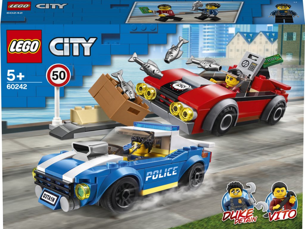 Sada Policejní honička na dálnici (60242) od LEGO City se 2 parádními auty a LEGO® City minifigurkami hrdiny Dukea DeTaina a nechvalně známého zloděje Vita umožňuje přehrávání úžasných dobrodružství při automobilových honičkách. Skvělý dárek pro děti milující akční hraní a fanoušky parádního televizního seriálu LEGO City. Parádní stavebnice pro děti Tato sada obsahuje jednoduchý návod na stavění a nabízí pokyny Instructions PLUS – součást bezplatné aplikace LEGO Life pro chytré telefony a tablety. S tímto interaktivním návodem na stavění s úžasnými nástroji přibližování a otáčení se začínající LEGO stavitelé rychle stanou opravdovými mistry! Vítejte v LEGO City! Policejní sady, které jsou součástí světa LEGO City, přinášejí vzrušující zážitky při stavění a hraní. Děti si rády vymýšlejí vzrušující scénáře s modely a postavami, které napodobují skutečný život zábavným a kreativním způsobem.