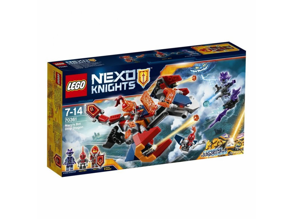 • Zkombinuj draka s bitevním oblekem LEGO® NEXO KNIGHTS™ a vytvoř tak dokonalé bojové spojení.