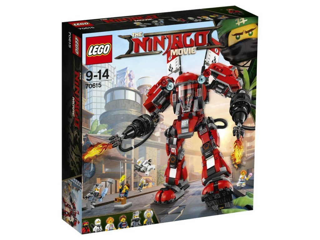 Připrav se na žhavou bojovou akci s tímto obrovským a vysoce pohyblivým robotem z filmu LEGO® NINJAGO® FILM. Ohnivý robot obsahuje otevírací kokpit pro minifigurku, dva ramenní vystřelovače disků a dvě paže s nestřílejícími ohnivými blastery. Obsahuje šest minifigurek s různými zbraněmi -včetně Kaiových katan a Zaneova luku a šípu - pro ještě větší hrací možnosti plné napětí.