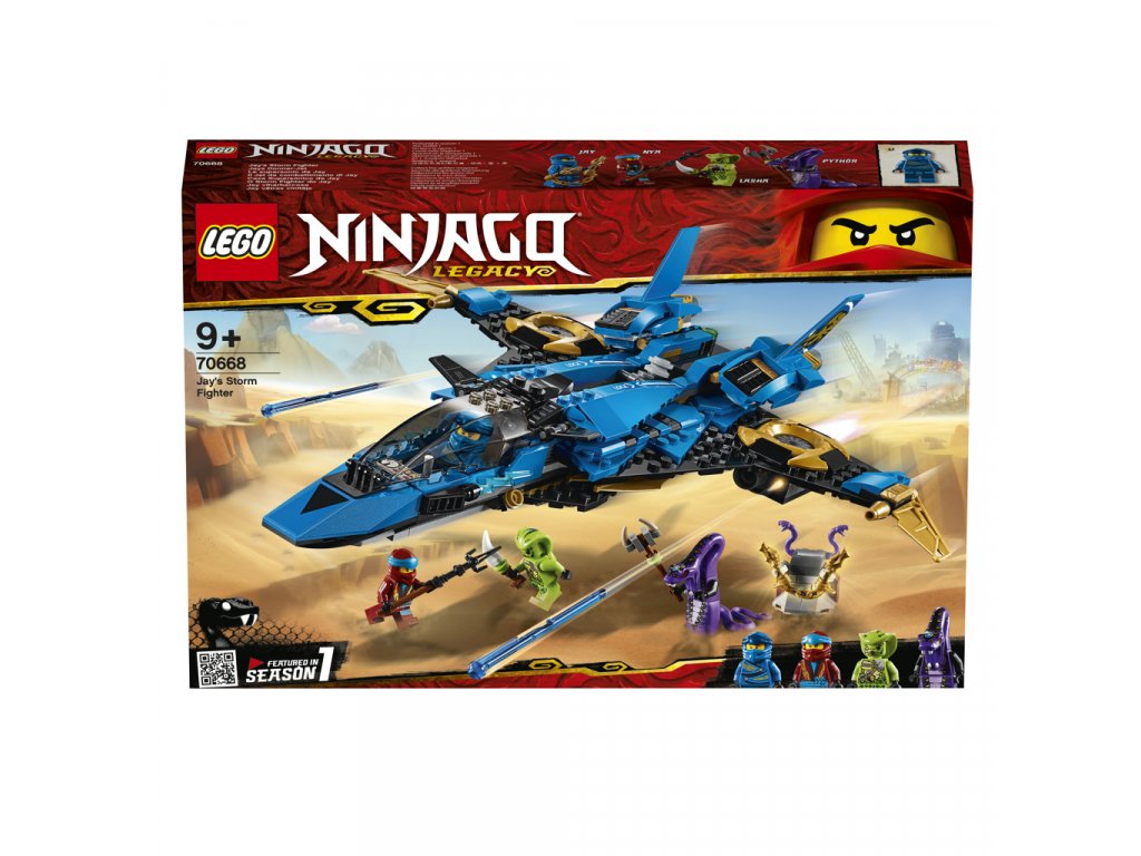 Přidej se k nindže Nye v boji proti Hadím kmenům a získej zpět Jayovy Nunčaky blesku v sadě 70668 Jayův bouřkový letoun od LEGO® NINJAGO® Legacy. Sestavitelný nindža tryskáč obsahuje otevírací kokpit pro minifigurku, pružinové vystřelovače, rozkládací křídla a čepele. Tato akční nindža stavebnice obsahuje sběratelskou zlatou zbraň – Nunčaky blesku – se sestavitelným stojanem Hadích kmenů, a k tomu navíc 4 minifigurky se zbraněmi, které ti umožní znovu prožít klasické akční scény z TV seriálu NINJAGO Mistři Spinjitzu.