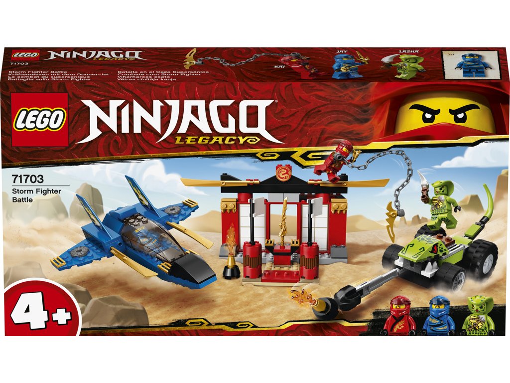 • Bitva s Bouřkovým štítem od NINJAGO® Legacy přináší parádní nindžovský tryskáč se sklápěcími křídly a auto s vystřelovačem, které fandům umožní přehrávat si napínavé bitvy z televizního seriálu NINJAGO Mistři Spinjitzu.