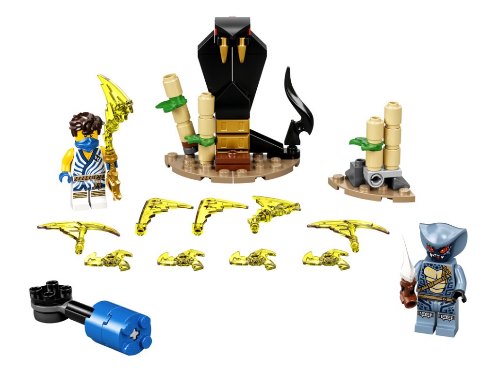 • Nindža stavebnice se 2 minifigurkami: úplně novým Jayem – novinkou pro leden 2021 – a legendárním hadím válečníkem, kterého děti znají ze seriálu NINJAGO®. Navíc nechybí 4 modré zbraně.