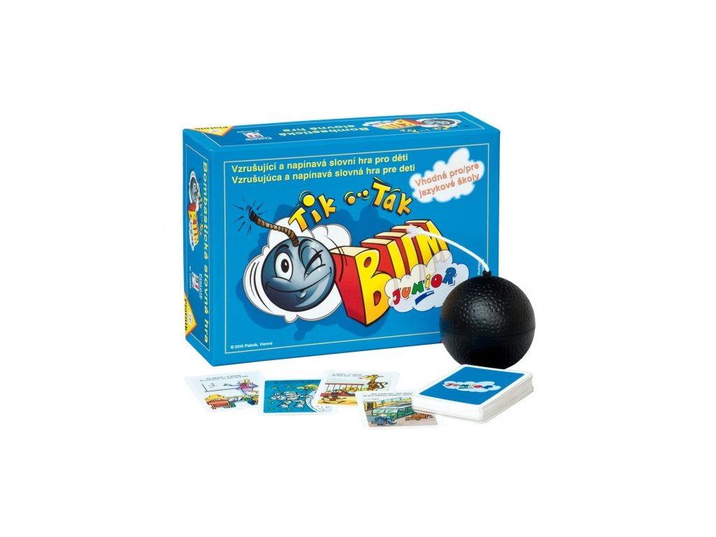 Rychlá slovní hra Tik Tak Bum Junior podporuje kreativitu, spontánnost a slovní zásobu! Zapni bombu, odkryj kartu, řekni slovo, které souvisí s obrázkem na kartě a předej rychle tikající bombu dalšímu hráči. Karty jsou nadepsány v pěti jazycích – českém, slovenském, anglickém, francouzském a německém. Hra je vhodná i pro jazykové školy.