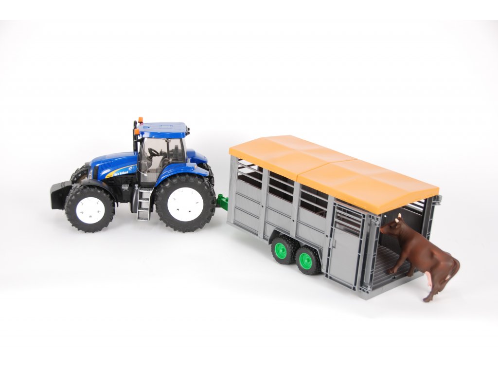 BRUDER 1695 Traktor New Holland T8040 s přívěsem na dobytek + 1ks kráva
